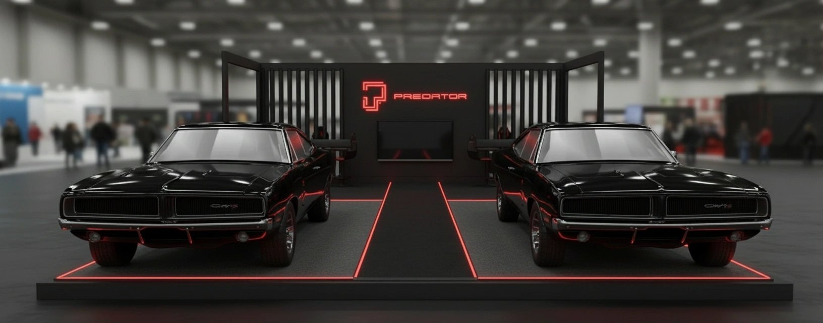 Predator Cars restomod old cars from the early 1970s era, like Dodge Charger and Challenger. They reached out to us to visualize their brand. As usual, it all started with research and interview sessions. We delivered a visual identity, including a logotype, colors, fonts to use, tonality, mock-ups, bi-folders, business cards, and trade stand design. We also did photography and a brand movie, including a song specially written for them.
